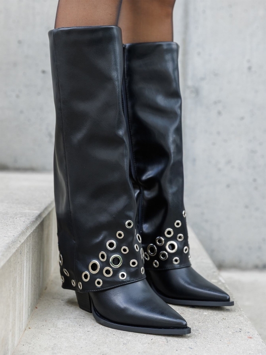 Bota Alta de Tacón Cuadrado en Piel Sintética Negra 32,95 € Color Negro Talla 36 37 38 39 40 41 Añadir al carrito
