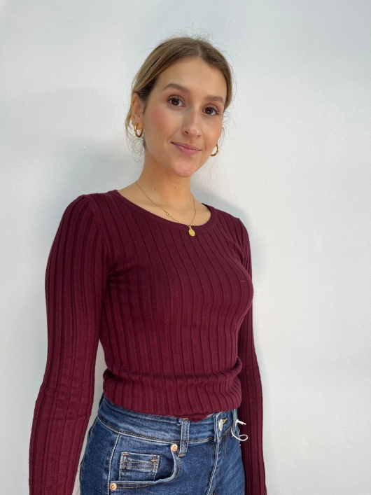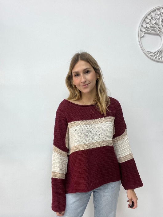 Nuevo Agotado Jersey de Punto con Estampado de Rayas Granate 20,95 € Tamaño Talla unica Color Granate Sin stock