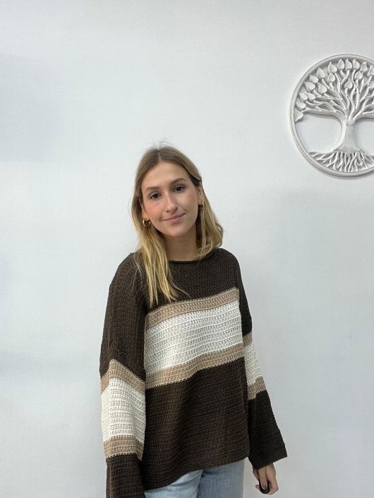 Nuevo Jersey de Punto con Estampado de Rayas Camel 21,95 € Tamaño Talla unica Color Camel Añadir al carrito
