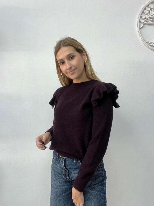 Nuevo Agotado Jersey de Punto morado con Volante y Detalle en Contraste 22,95 € Tamaño Talla unica Color Morado Sin stock